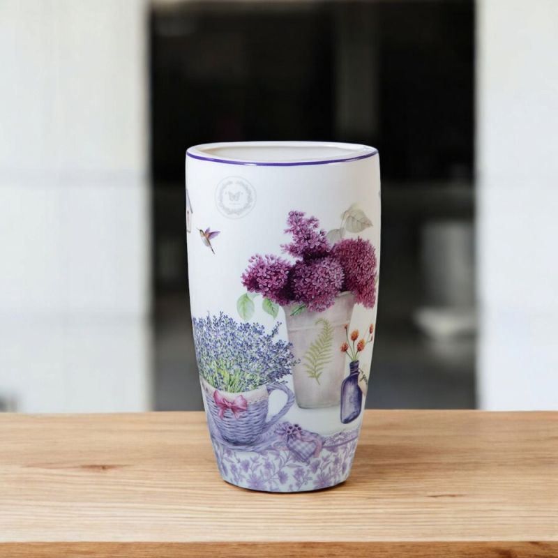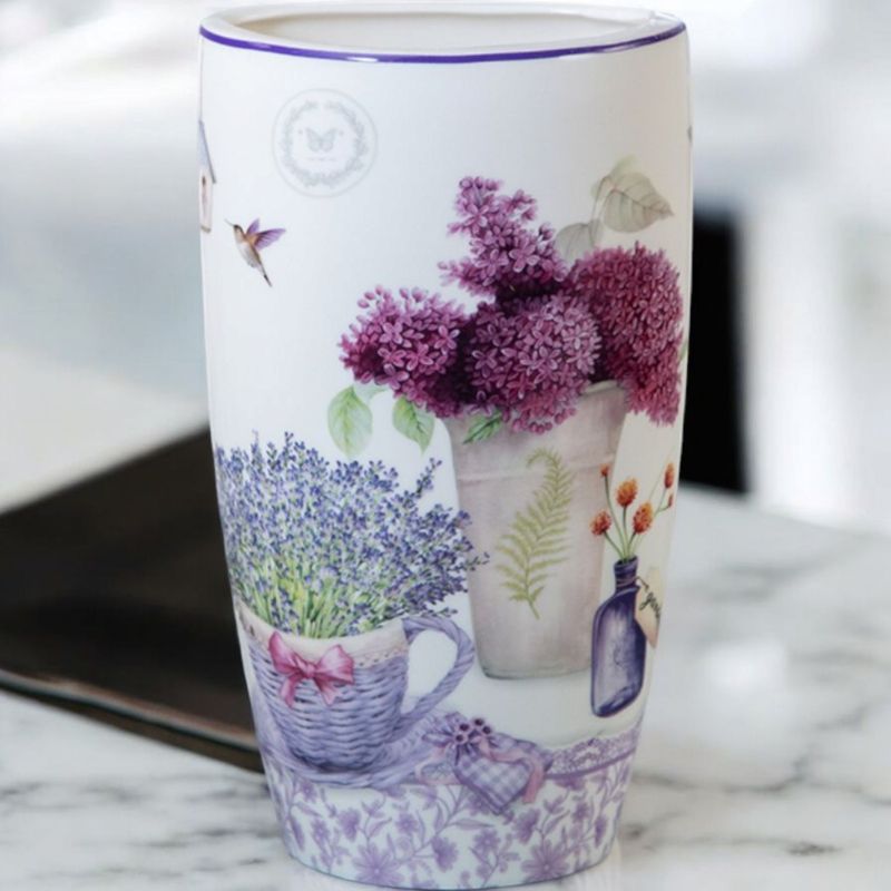 Порцеланова ваза с принт, който ще ви отведе в безкрайните поля с цъфнала лавандула и люляци.Когато природата влиза в ежедневието ни с красиви предмети, тя оживява и ни пренася на места създадени от Твореца.Този дизайн е доказателство за точно това.Подбора на предмети в серията КОШНИЦА С ЛАВАНДУЛА е направен така, че всеки да открие своя артикул.Вазата може да се използва с вода.Предлага се в подаръчна кутия с красив принт на капака.
