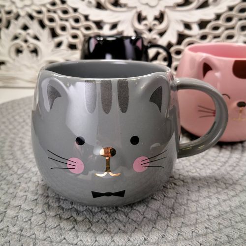 Чашите от серията КОТЕШКИ УСМИВКИ са красив начин да започнете деня в компанията на любимия си домашен любимец.Цветовете, които са подбрани подчертават само стилните линии на изделието и го правят да изглежда още по-красиво.Нестандартните форма и релеф привличат с различната си визия. Чашата е подходяща,, както за подарък ,така и за всеки, който иска различен начин да изпие кафето си или любимата напитка. В сайта ни серията се предлага и в други цветове и форми, които също може да харесате.
