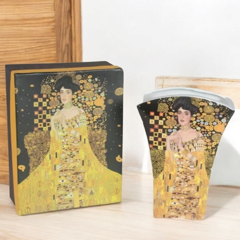 Ваза с трапецовидна форма. Принт с репродукция на "Портретът на Адел Бош", една от най-известните творби на Густав Климт. Предлага се в луксозна подаръчна кутия.
