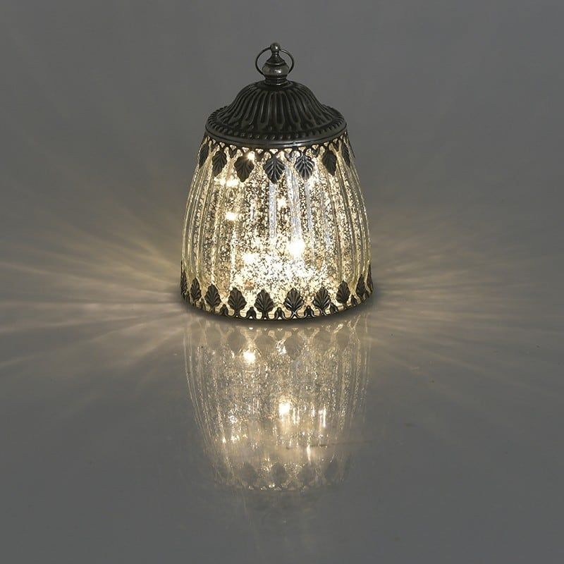 Стъклен лед фенер с трапецовидна форма в сребристо.