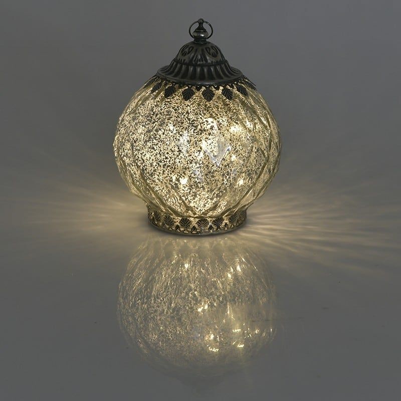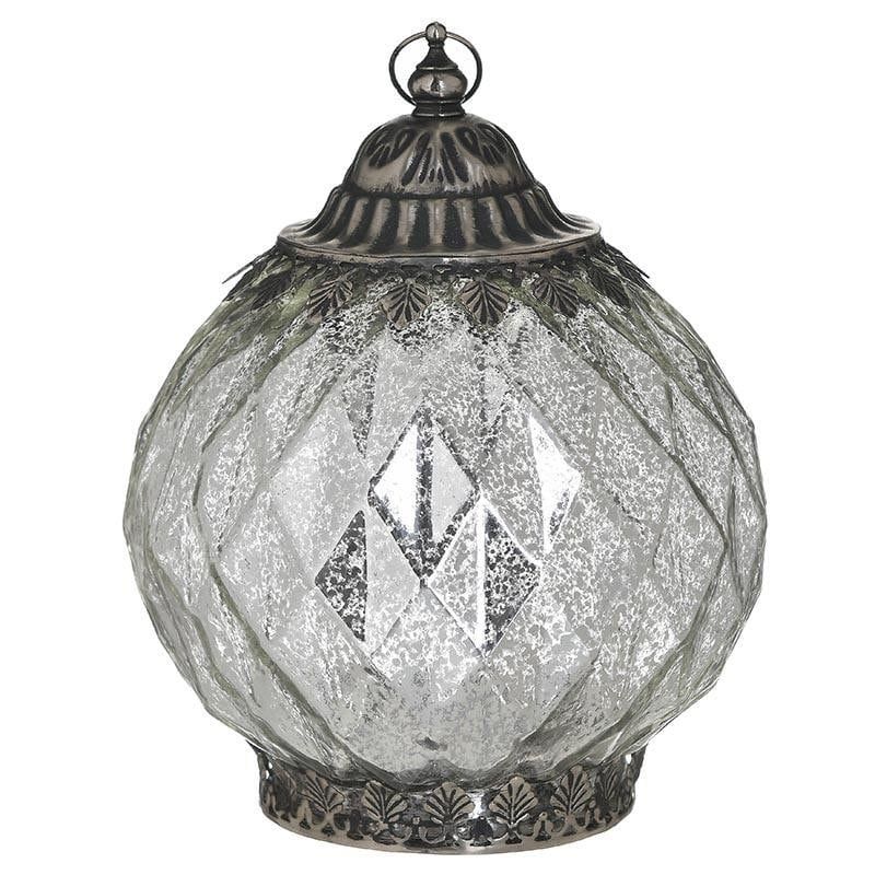 Стъклен лед фенер с кръгла форма в сребристо.