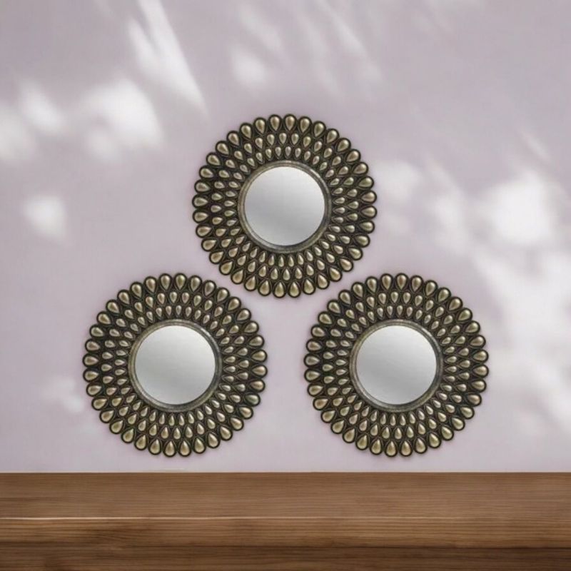 Неокласически стенни огледала с кръгла пластмасова рамка в златен цвят.
