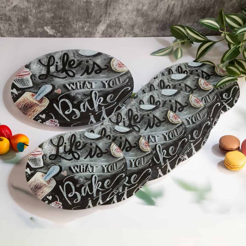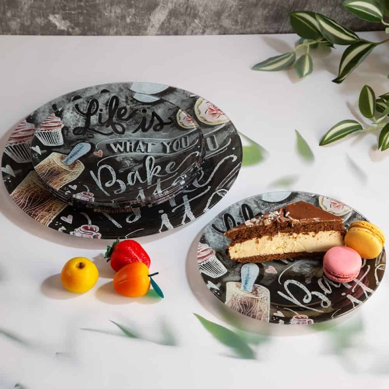 Комплект за торта от цветно стъкло, съдържа: една голяма шест малки чинии.