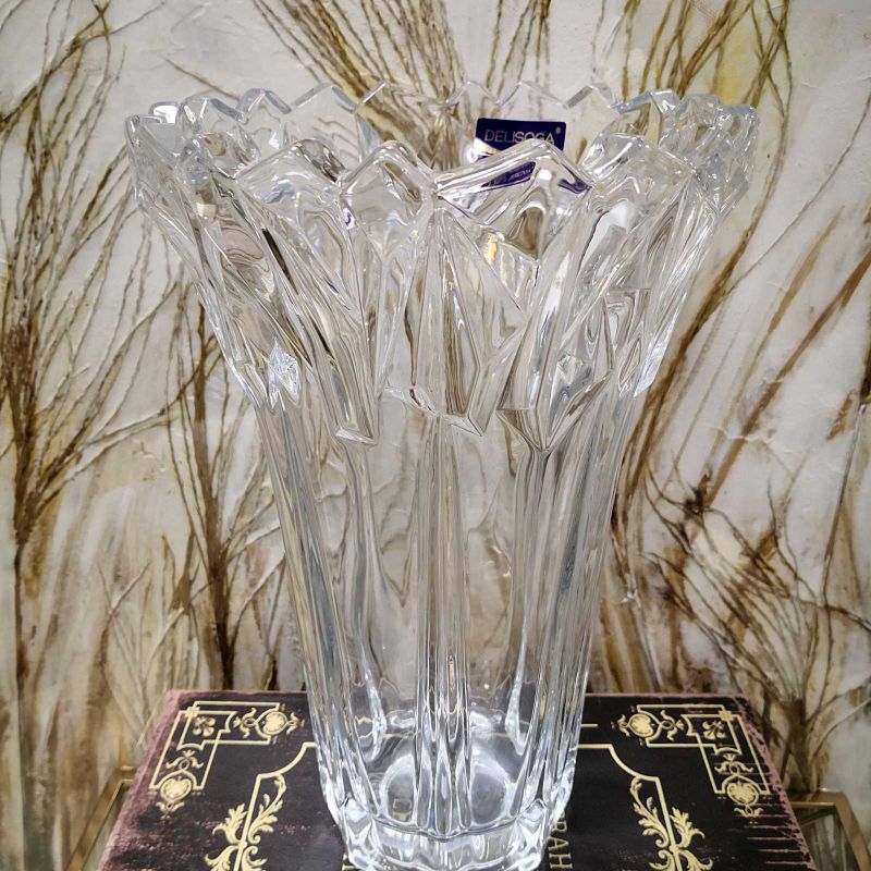Вазите и съдовете от серията СТЪКЛОТО НА СЛЪНЦЕТО са дело на една от големите фабрики за стъкло в света.DELISOGA е марка, която се отличава и разпознава на пазара.Ние ви предлагаме различни техни изделия, които може да съчетаете в отлични композиции- ваза, захарници,купи и купички и още много може да откриете в сайта ни. Размер-27см*18см*18см.Материал-стъкло.